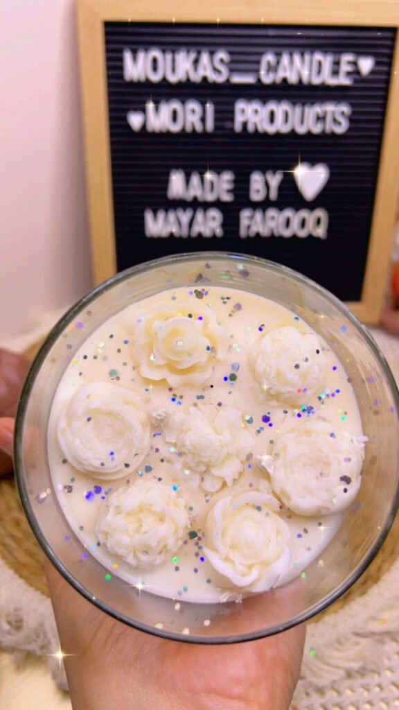 الشموع البيزك في الجار الشفاف لها جمال من نوع مختلف. نقية، نظيفة، ومناسبة لأي ديكور. نورها بيريّح العين ويعمل “minimal aesthetic” يشبه الفن الهادي. مثالية لعشاق البساطة.