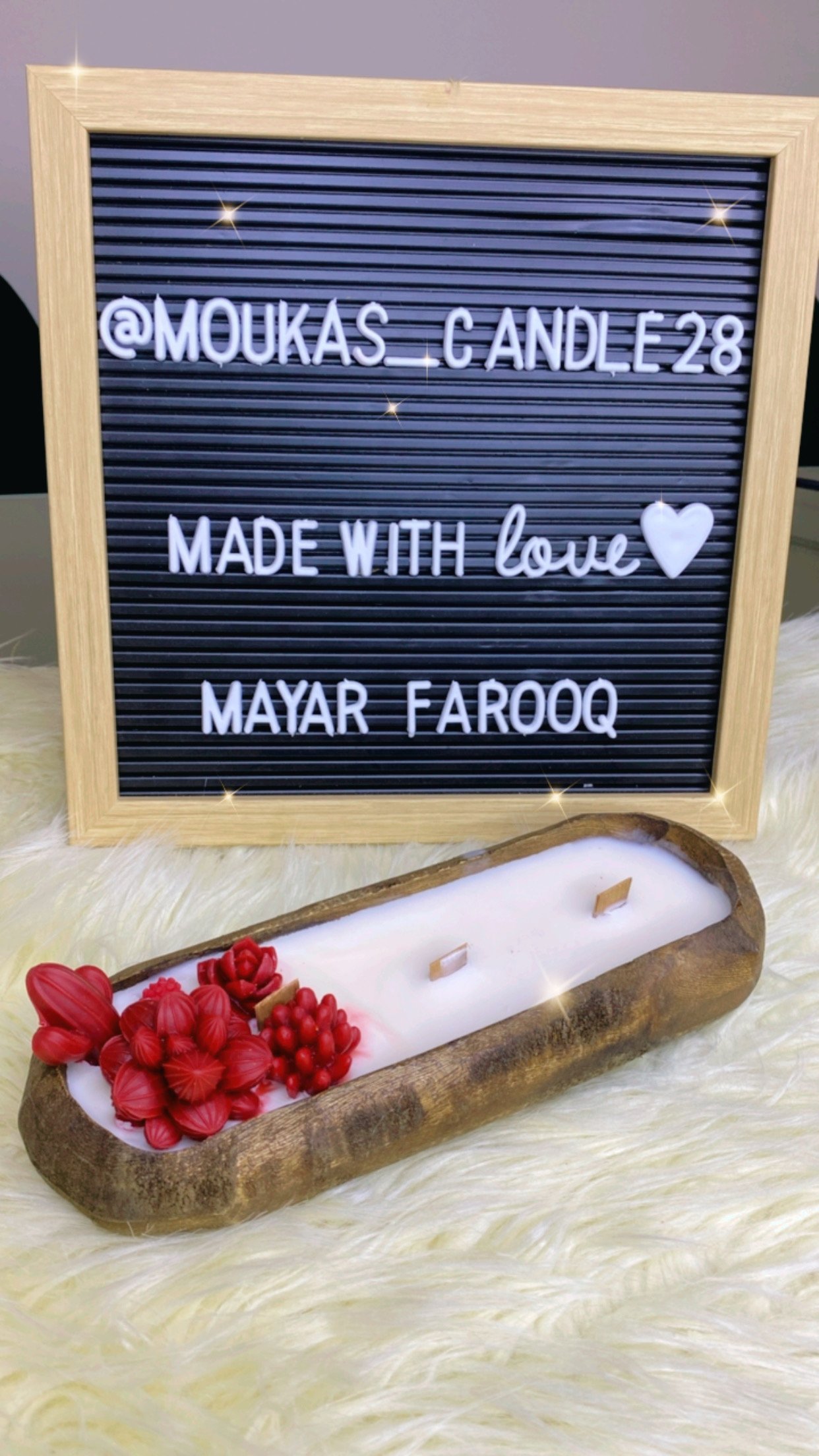 حواف الخشب، ملمسه، لونه، ورسمته الطبيعية… كل تفصيلة بتبان تحت ضوء الشمعة، وده اللي بيخلي كل جار شكله متفرد. الشمعة جوّه الخشب بتدي مزيج ما بين الطبيعة والنور… لمسة بسيطة بس مؤثرة جدًا.